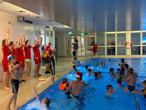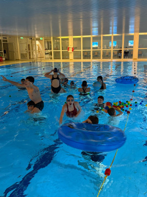 Viele verschiedene Spiele, ganz viel Lachen, Bewegung und Spaß im Wasser.